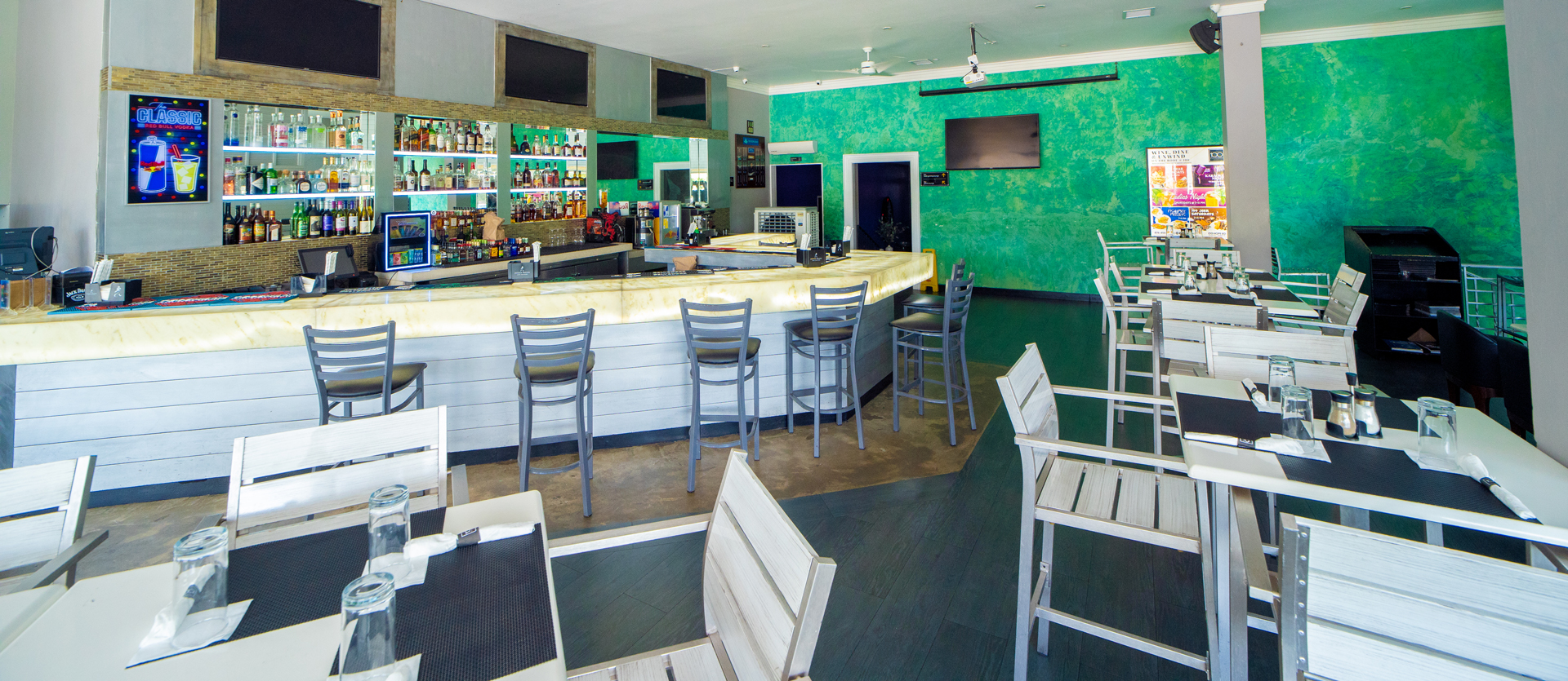 The Terrace at 100 is an elegant and relaxing dining area; Modern and chic in design. The Terrace is an airy restaurant covered overhead and open on the sides with an open concept design, creating an indoor-outdoor dining experience. It offers a full menu ranging from casual Pizzas and Burgers to fine dining NY Strip Sirloin and Grilled Salmon. Some dishes even feature Jamaican cuisine with a 100 twist – Jerk Chicken Cocowich or the zesty Roasted Garlic and Callaloo dip.